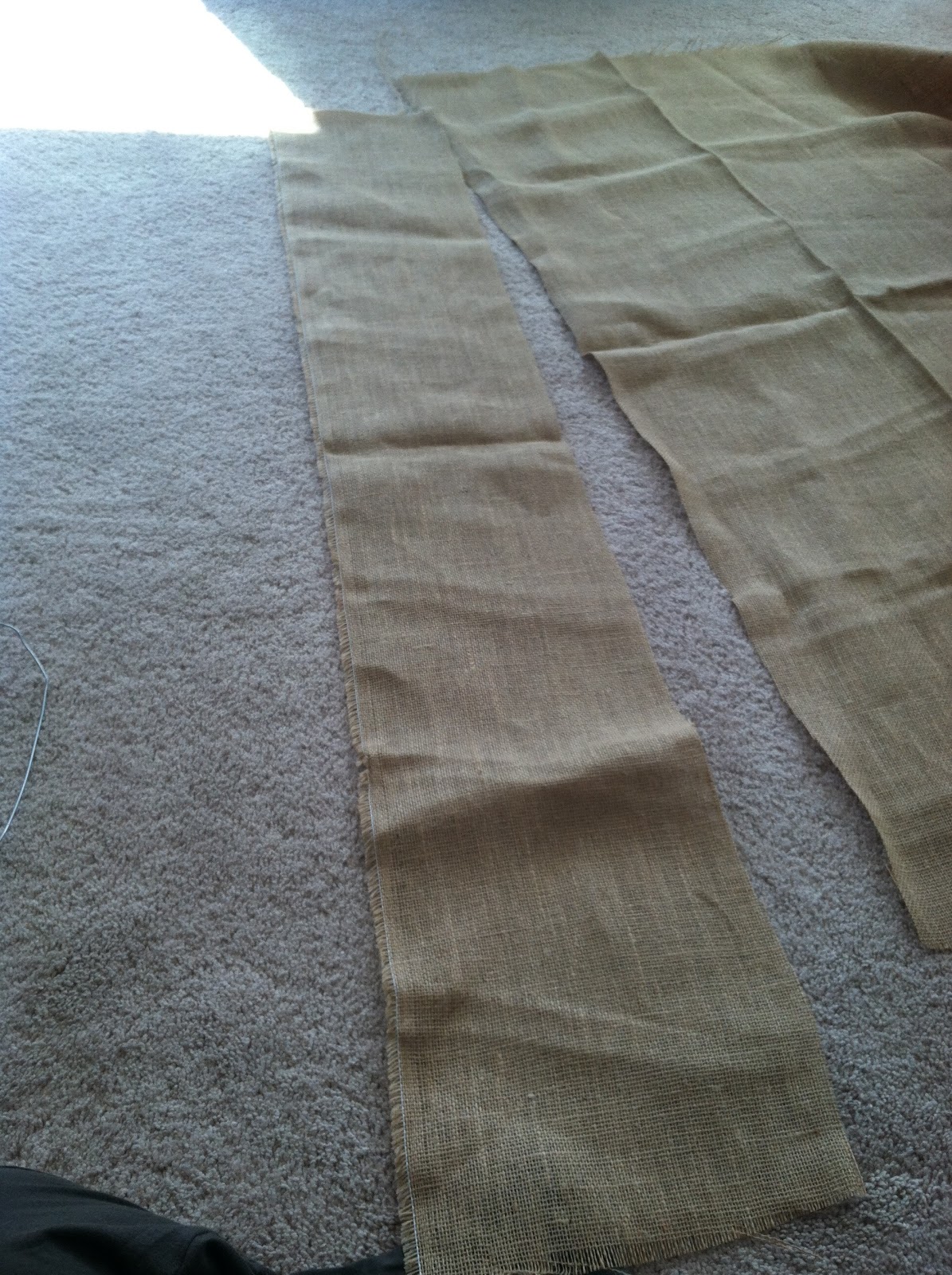 Then I took my burlap and cut it into strips that were not wider than 12 inches....then folded them in half and proceeded to "cinch" the burlap onto the hanger....(again, HARDER THAN IT SOUNDS!)